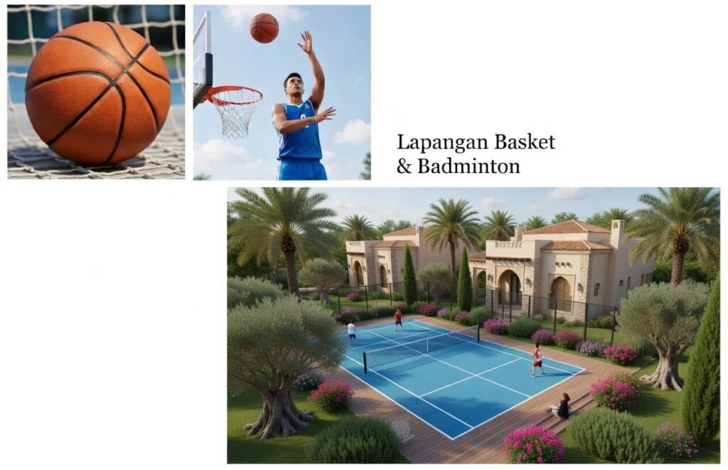 Lapangan olahraga serbaguna untuk basket dan bulu tangkis. Sarana ideal untuk meningkatkan kebugaran dan kebersamaan antar penghuni.